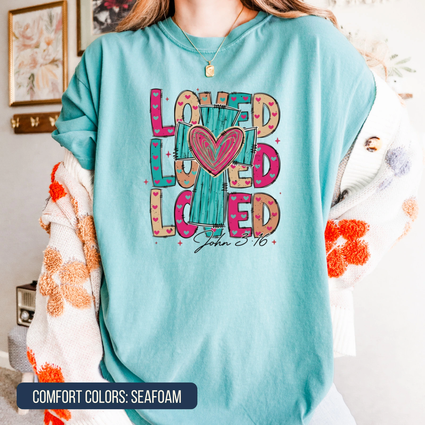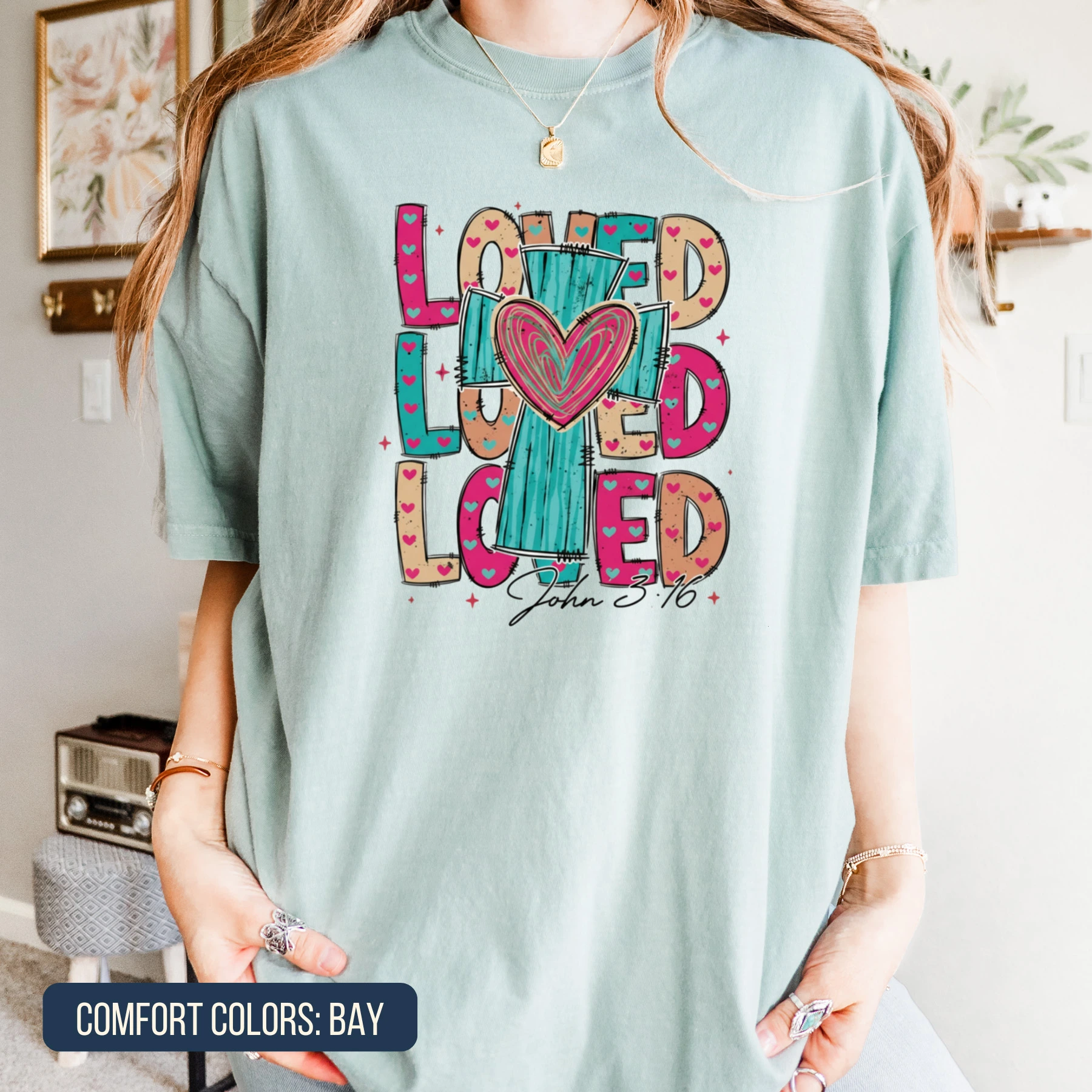 V10 - LOVED x3 with Cross - John 3:16 (teal)